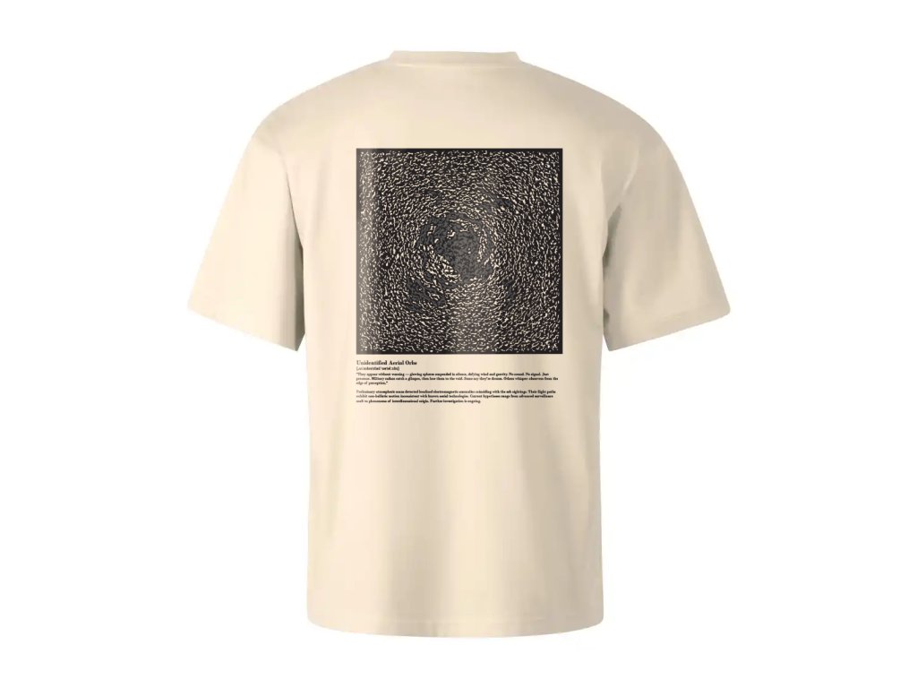 Triko OVERSIZED SAND TEE UNIDENTIFIED AERIAL ORBS je ušito ze 100% bavlny, gramáž 200 g/m2 a střiženo jako oversized tirko. Jeho designe je tvořen unikátním grafickým stylem našeho designéra Slavoj. Pattern, ve kterém se nachází abstraktní grafika se nepodaří nikdy vytvořit zcela stejně, proto je tento design unikátní a nereplikovatelný.